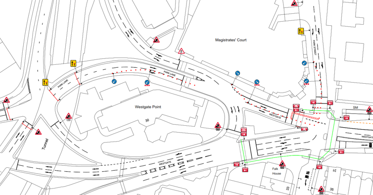 Phase 1 – Westgate Eastbound & bus lane route