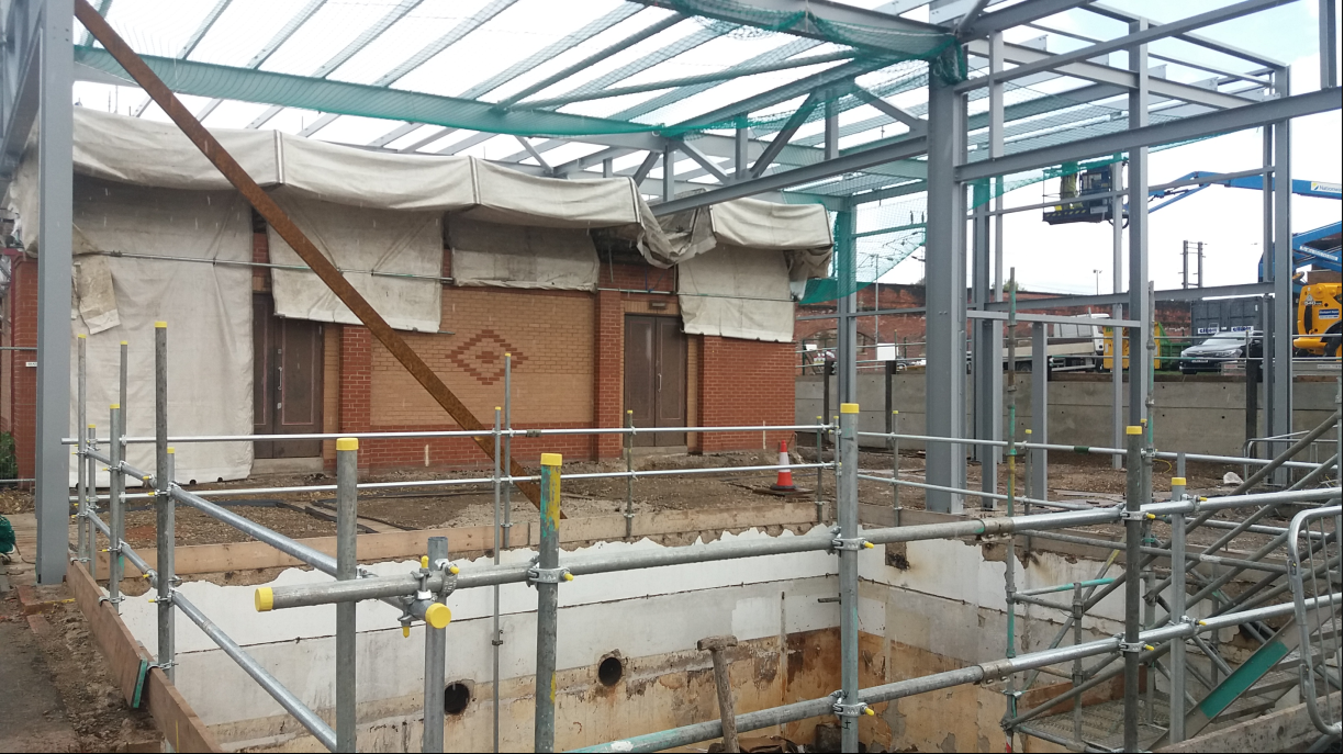 Additional structural progress has seen the completion of the ground beams which will support the steel frame of the building and completion of the concrete base which will support the flue.