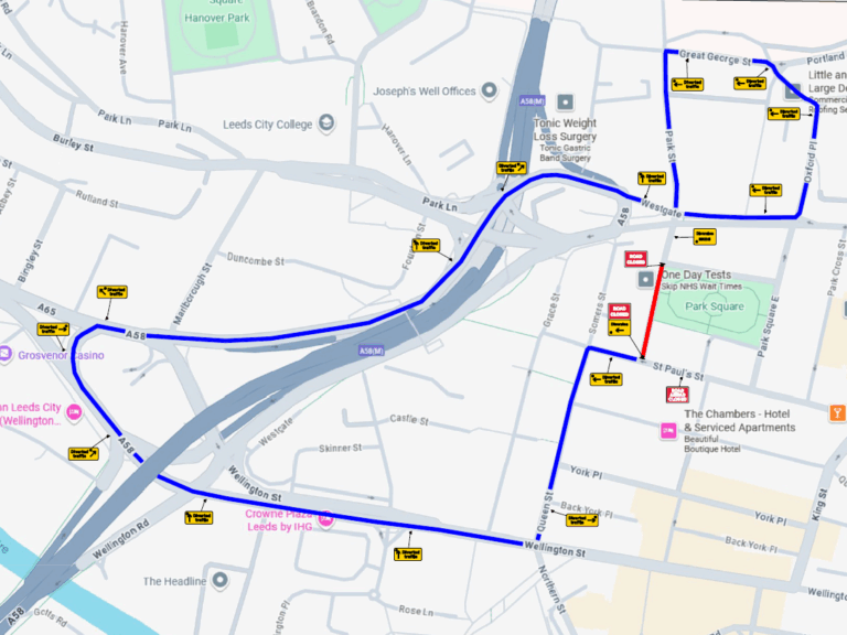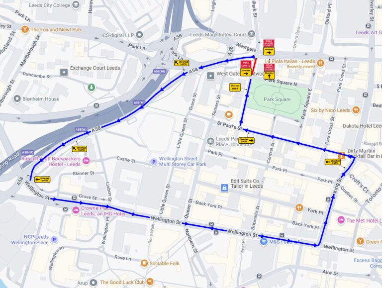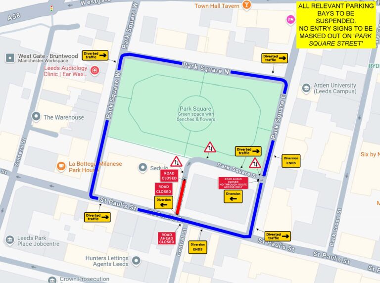 This will result in various lane and road closures, parking bay suspensions, and pedestrian management on Westgate, Park Square West, Park Square South and St. Pauls Place.